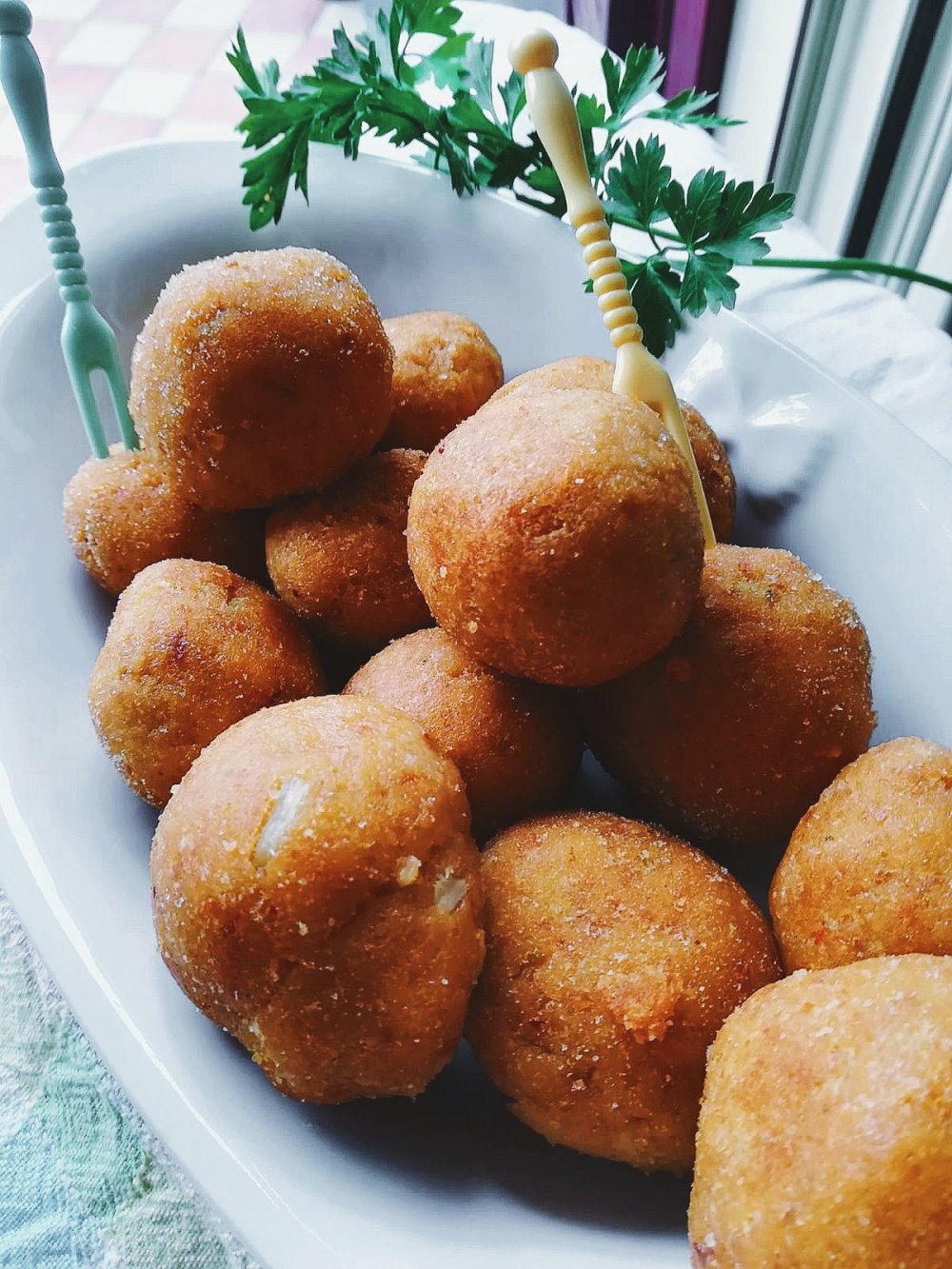 Impastate e formate con le mani delle piccole polpette, appoggiatele su un tagliere e quando avrete usato tutto l’impasto passatele nel pangrattato, mettete sul fuoco la padella con l’olio per friggere e quando questo sarà abbastanza caldo metteteci le polpette e lasciatele cuocere fino a che non si saranno dorate.